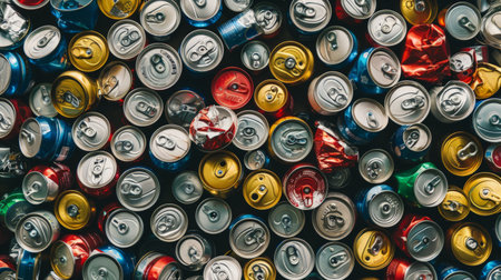 Large pile of aluminum drink cans stacked up high, ready to be recycled and turned into something new