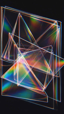 The phenomenon of light diffraction is visually represented as it passes through a prism, creating a vibrant array of colors and patterns
