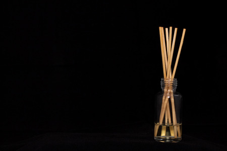 An aromatic diffuser with sticks isolated on a black background