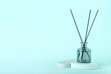 Reed diffuser on color background