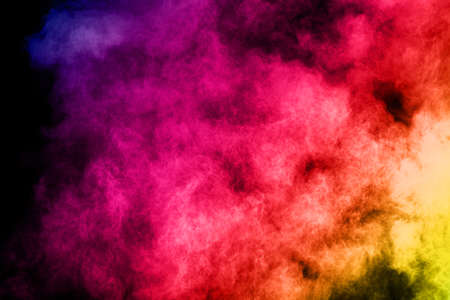 Colorful powder explosion on black background. Abstract colorful cloud of dust.