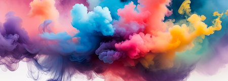 Colorful smoke clouds create a mysterious and ethereal banner template for various uses