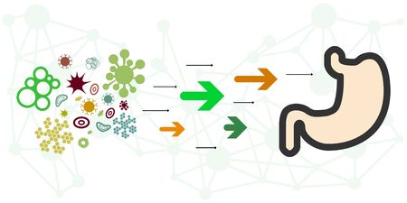 vector illustration for stomach infection with bacteria and microbes attacking organ