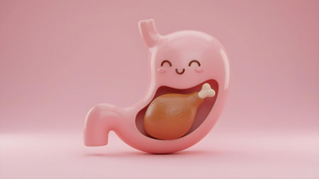 3D Cute Stomach Illustration with Turkey Drumstick Inside