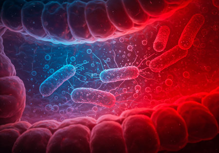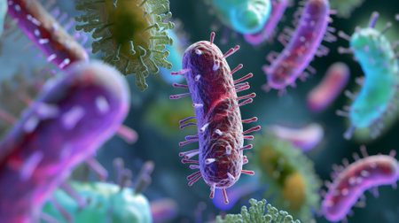 Colorful bacteria and microorganisms thriving within a human gut at the microscopic level