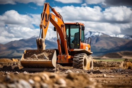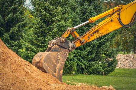 Heavy machinery excavator digging soil at construction site