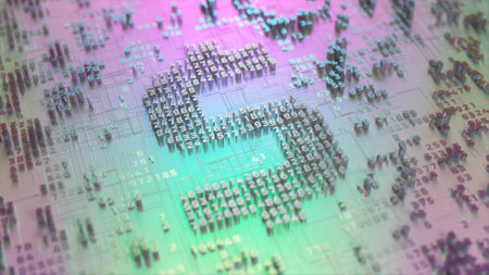 Dollar logo in the form of a microcircuit. Payment systems. Electronic transactions. Digital currency. 3d illustration. High quality 3d illustration