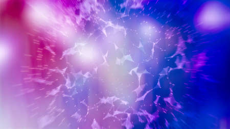 Blur light flare. Bokeh neon glow. Futuristic radiance. Defocused ultraviolet navy blue pink purple color flecks glare on dark modern abstract background.