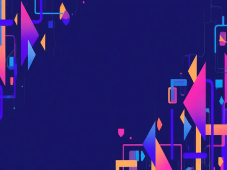 This stock illustration features a vibrant and dynamic backdrop composed of abstract geometric shapes rendered in a cartoon style.