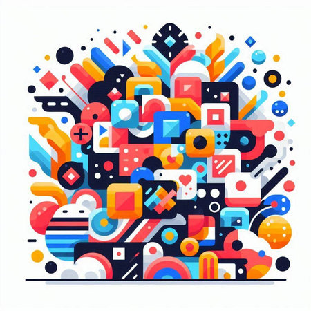 This vibrant abstract artwork features a playful composition of colorful geometric shapes and textures, perfect for modern design inspiration.