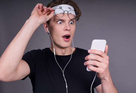 desperate young man with mobile phone