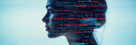 Artificial Intelligence Digital Woman s Profile with Binary Code, Futuristic Concept.