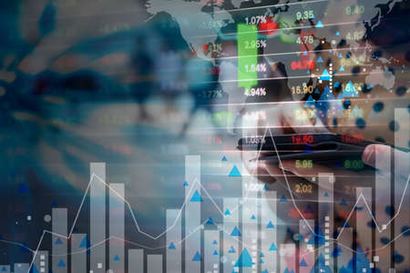 Grow Stock market trading graph in graphic concept.financial investment or economic trends business design. Abstract finance background.Low angle shot.