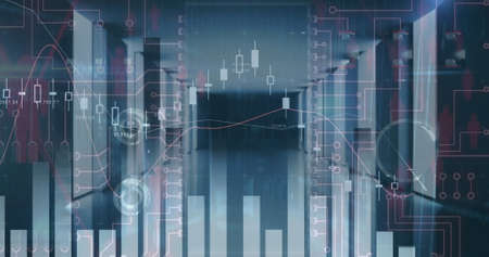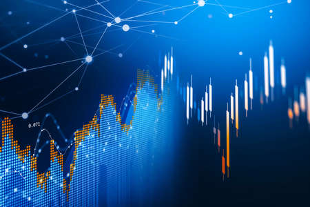 Abstract financial graph with candle stick and bar chart of stock market on financial background