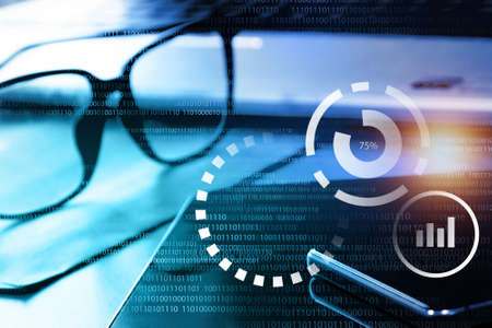 Business statistics and Analytics value . Abstract glowing forex chart interface background. Investment, trade, stock, finance and analysis concept.