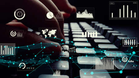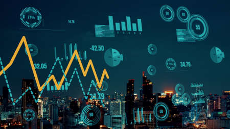 Creative visual of business data analyzing technology . Concept of digital data for marketing analysis and investment decision making .