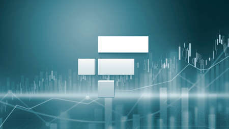 financial candlestick chart with line graph and stock numbers on gradient blue color background