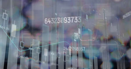 Digital composite image of multiple changing numbers and statistical data processing. global finance and technology concept