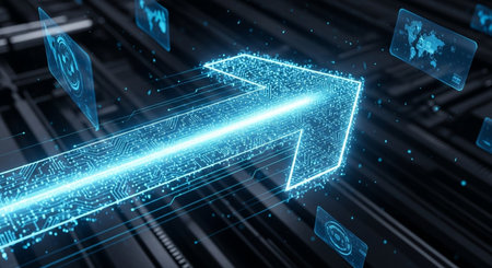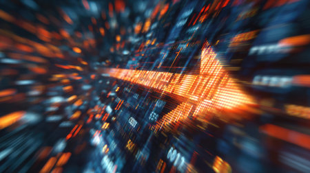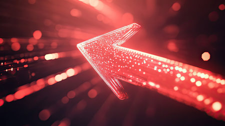 Eye-catching abstract image featuring an arrow that symbolizes growth and progress, surrounded by vibrant digital data points in motion.