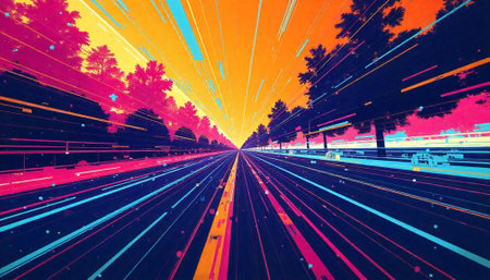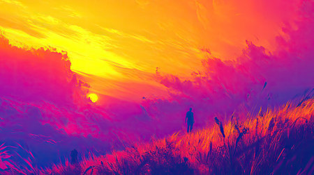 Vibrant Rainbow Acid Landscape with Neon Pink Orange Sky