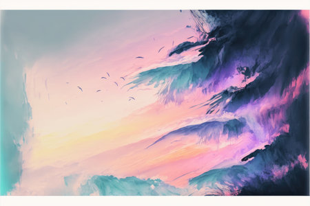 Abstract art in splashing watercolor in colorful sunset. Concept of mixed color technique design background. Finest generative AI.