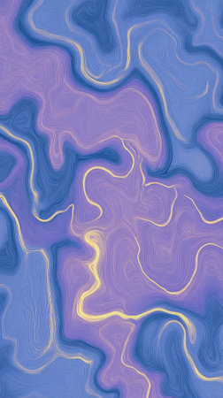 An abstract artwork showcases flowing swirls of blue and purple hues, accented with lighter shades. The composition features a textured appearance, creating a visually dynamic design. This image evokes fluidity and movement suitable for various design applications, potentially for decorative and editorial purposes.