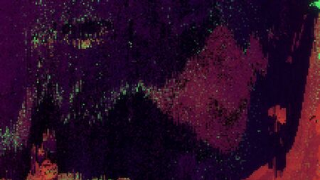 Digital glitch effect with vivid scan lines and distorted colors reminiscent of old TV screens