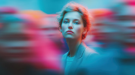 This striking image captures the essence of shifting identities using motion blur to convey the complexities of self perception and the passage of time.