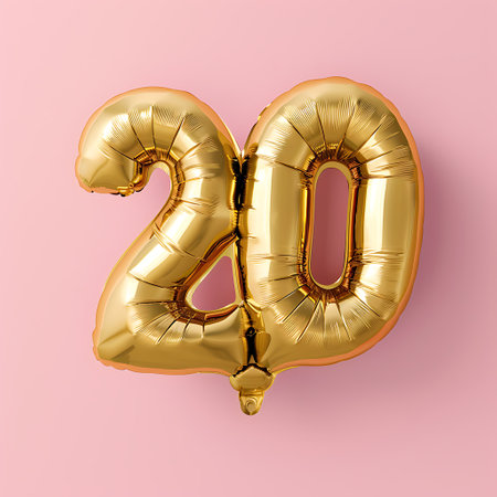 A beautiful and celebratory Golden 20 Balloon depicted against a sparkling background