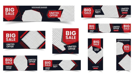 set of creative web banners of standard size with a place for photos. Business ad banner. Vertical, horizontal and square template. vector illustration EPS 10