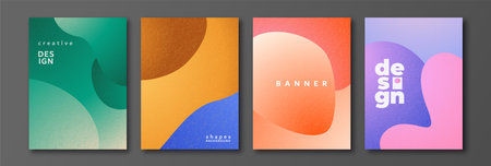 Modern set of abstract covers. Minimal lid design. Colorful halftone gradients.