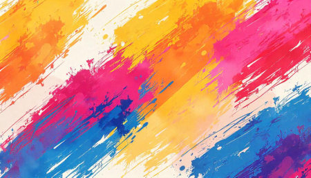 Vivid abstract background featuring bold brushstrokes and splashes of color, creating a lively and expressive visual appeal