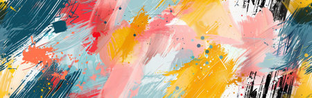 An abstract background with a mix of bold splashes and brush strokes in vibrant colors, creating a lively and artistic visual experience.