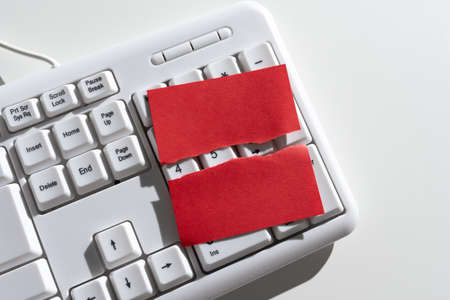 Yellow crime scene tape on computer keyboard. Computer crime concept.