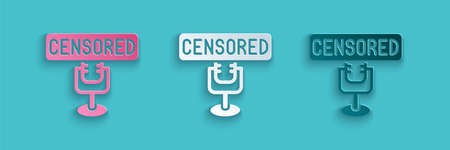 Paper cut Censored stamp icon isolated on blue background. Paper art style. Vector