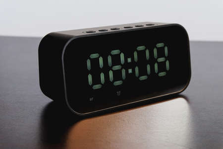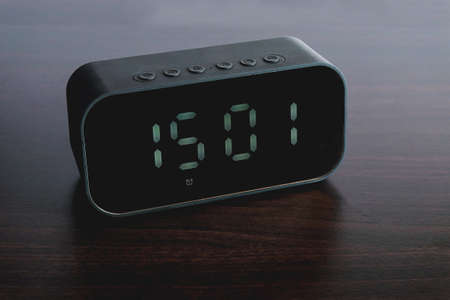 Black Digital alarm clock on background.