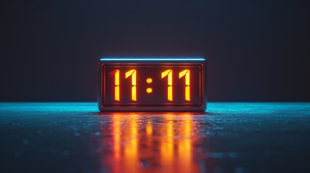 A minimalist photo of a digital clock displaying 11:11, against a stark, illuminated background.