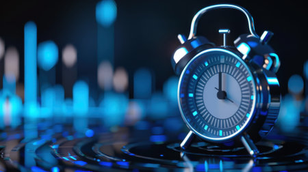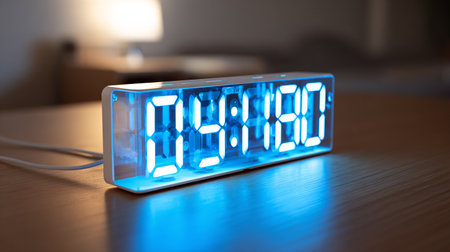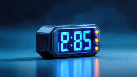A digital alarm clock displaying 2:85 in a captivating blue light, perfect for adding a touch of modern style to bedroom decor, symbolizing time management and efficiency.