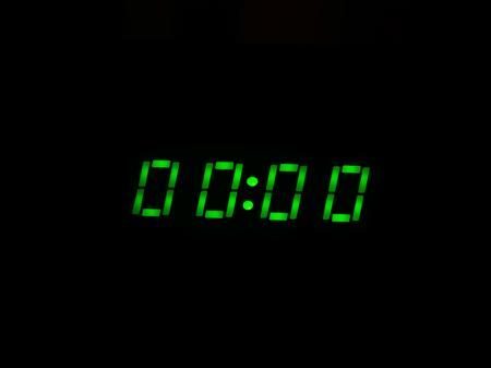 Digital clock show 23:59 on the black background