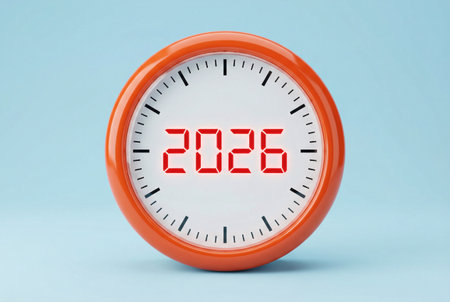 Digital display showing year 2028 in bright orange LED lights against dark background, creating modern and futuristic feel. numbers are clear and bold, emphasizing passage of time