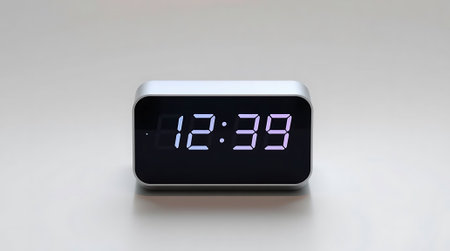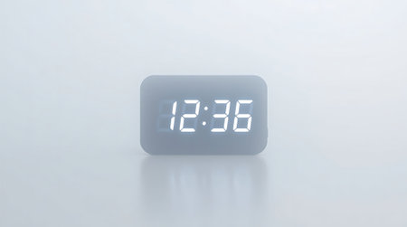 Sleek digital clock displays 12:36 with a bright glow. Perfect for modern spaces, showcasing punctuality, efficiency, and contemporary design. Elevate your projects and lifestyle.