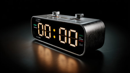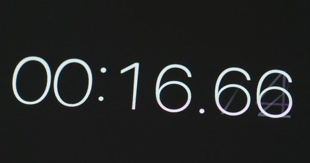 a glitchy digital stopwatch, with the seconds and minutes digits rapidly changing., created with generative ai