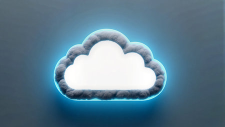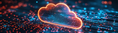 A captivating digital representation of a cloud symbol glowing in electric blue, surrounded by intricate data connections, embodies modern cloud computing technology.