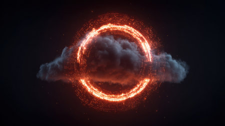 This image showcases a digital cloud encircled by a glowing light pattern against a dark background. It serves as an inspiring visual for creative concepts and abstract art.