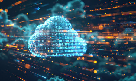 A stunning digital cloud graphic that represents modern technology and connectivity, featuring intricate binary code and a futuristic design in blue tones.