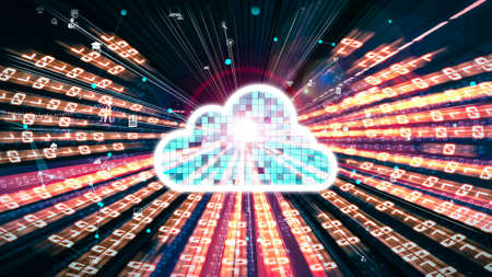 Cloud technology, cloud computing symbol, random numbers and others elements which creating abstract 3D information technology illustration