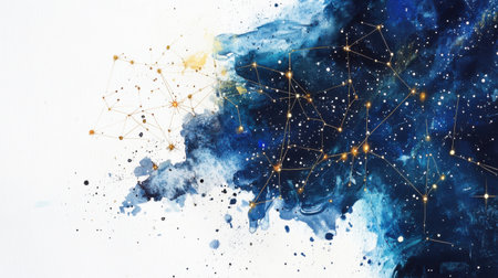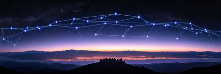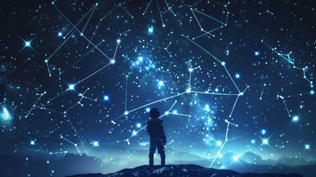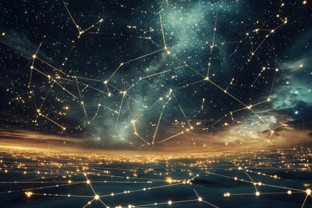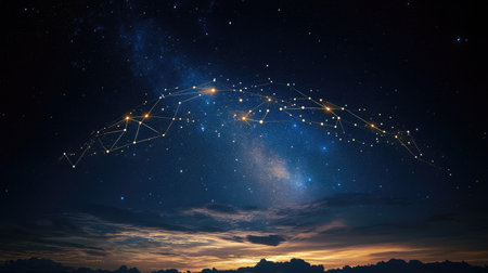 A stunning visual representation of a starry night sky with a network of interconnected lines and dots
