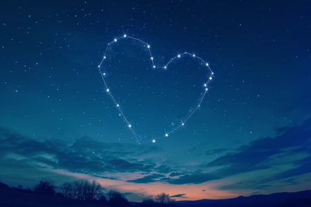 A vibrant digital illustration of constellations in a serene night sky with a gradient background