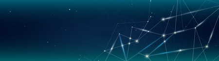 Vector illustration of smooth dark blue background with connecting lighting dots and lines. panoramic background for web banner