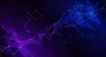 White lines and dots form a network on a dark blue to light purple gradient